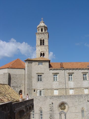 Je komt soms op rare plekjes toeristen tegen in Dubrovnik. Hier als het are in de dakgoot.
