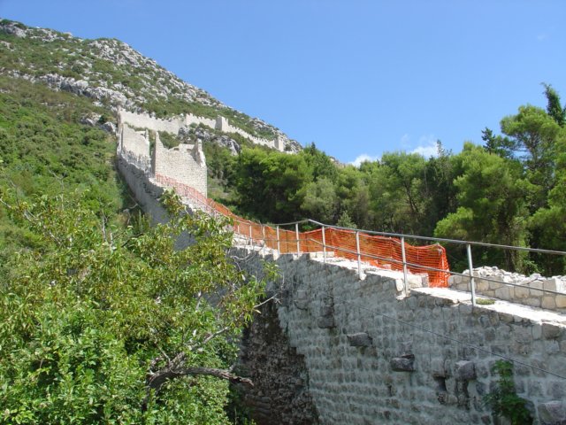 Er wordt volop hersteld aan de 2 muren die Ston Met Mali Ston verbinden.